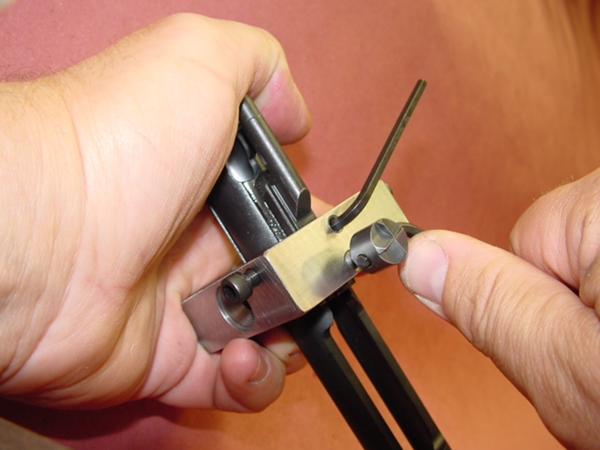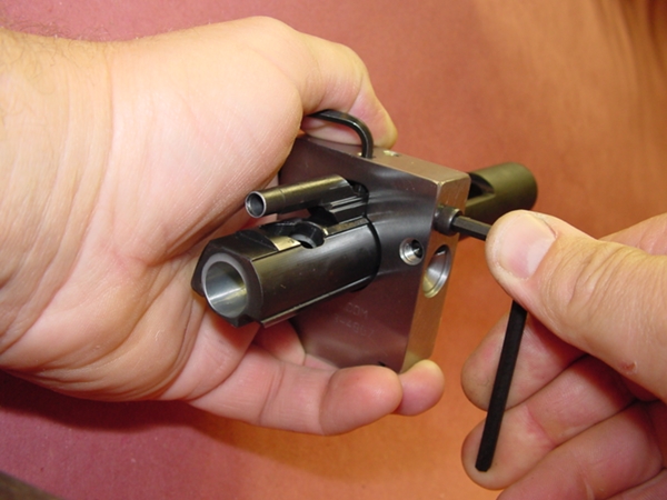 the tool to the bolt carrier. Note: Always wear safety glasses when working on your rifle. It is not unknown for Allen wrenches to break and send shards