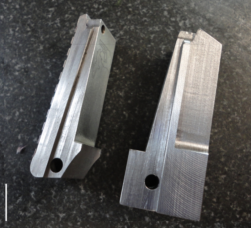 rear wall of the pistol's magazine chute -- or, this area of the MSH-F can simply be milled