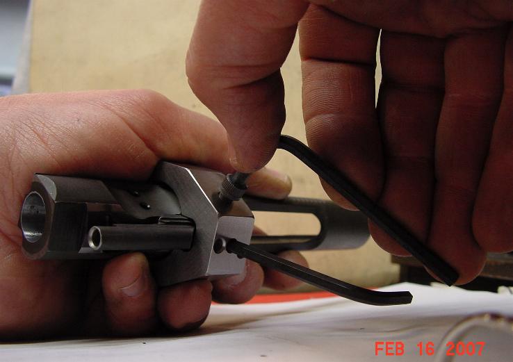 screw socket. Once the tool is located, the staker screw is turned in to touch the top of the carrier key screw head, plus one turn. Now there is screw head metal